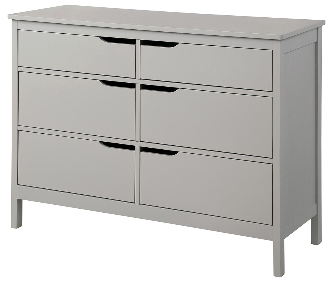 Complete your nursery by adding this modern design 6 drawer double dresser to your decor. This Lauren double dresser features 6 spacious drawers with metal glides and safety drawer stops.