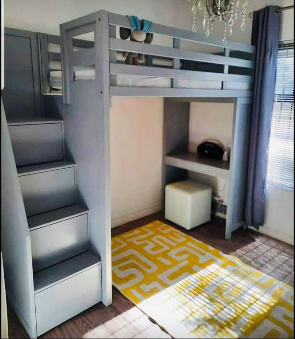• Built-in shelves (3 steps) on the side adds easy-access storage for books, toys, or décor.