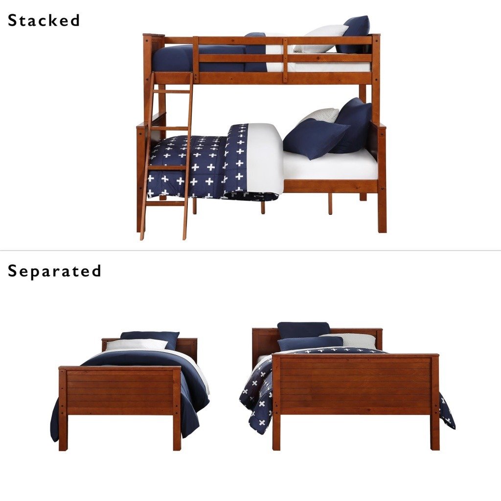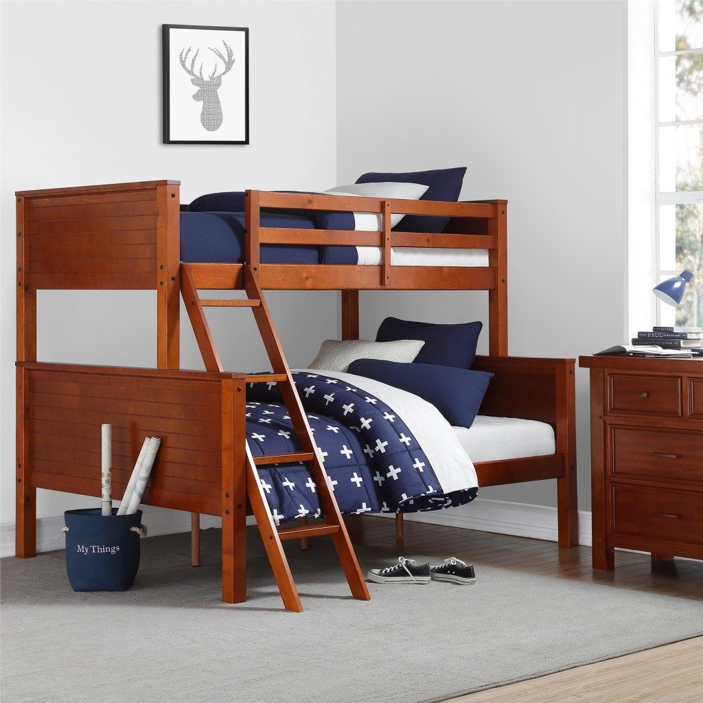 This tri-bunk bed is specifically designed to maximize space in shared bedrooms, guest rooms, or vacation cottages. Its compact, three-tier design accommodates multiple sleepers without taking up excessive floor space, making it ideal for rooms where space is at a premium. This arrangement is perfect for siblings sharing a room or for creating extra sleeping arrangements in a guest bedroom. The layout of the bed ensures that each sleeper has their own comfortable and defined space, promoting a restful night’s sleep for everyone.